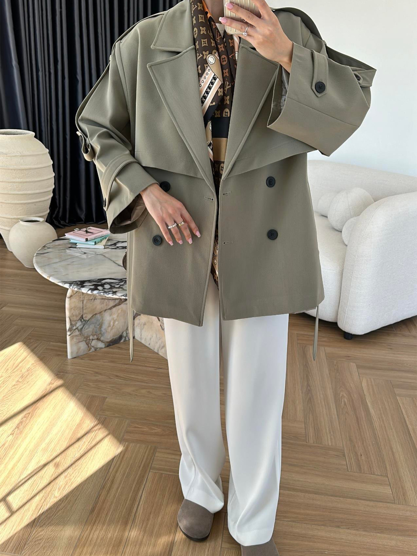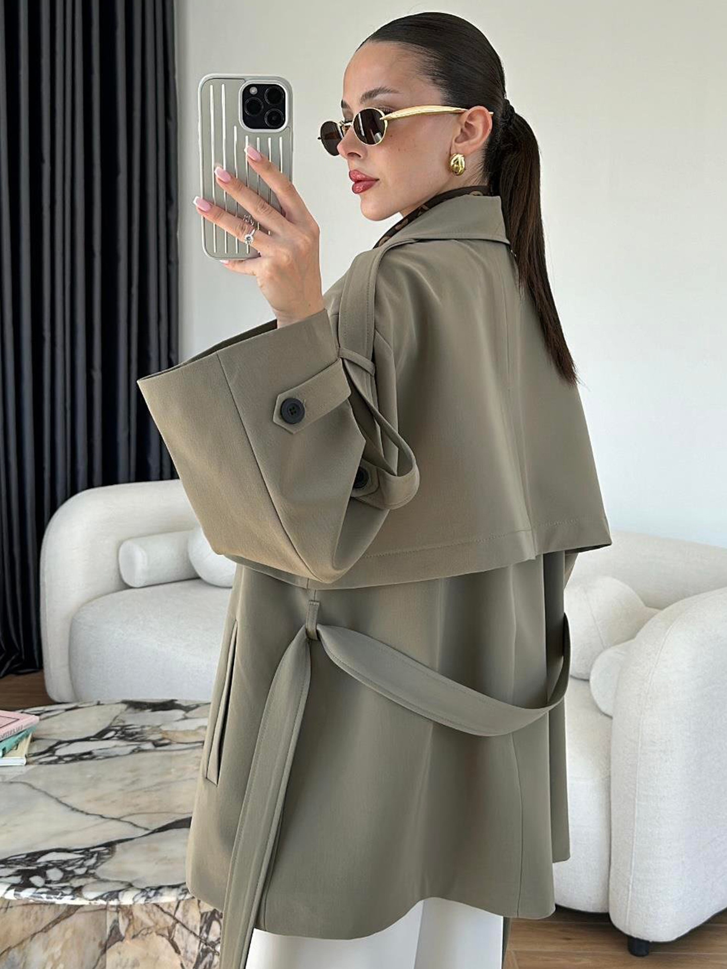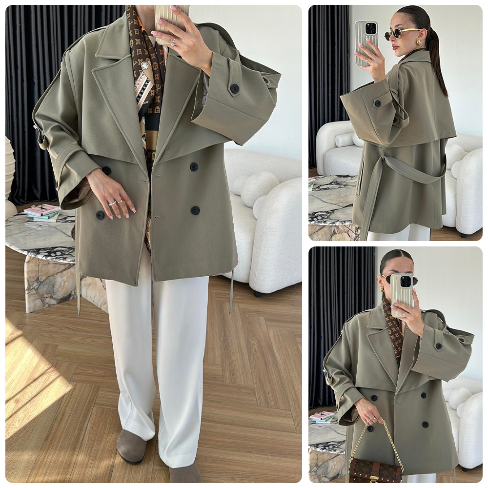 Turn-down Collar Fitted Waist Figure-flattering Elegant Single-breasted Trench Coat