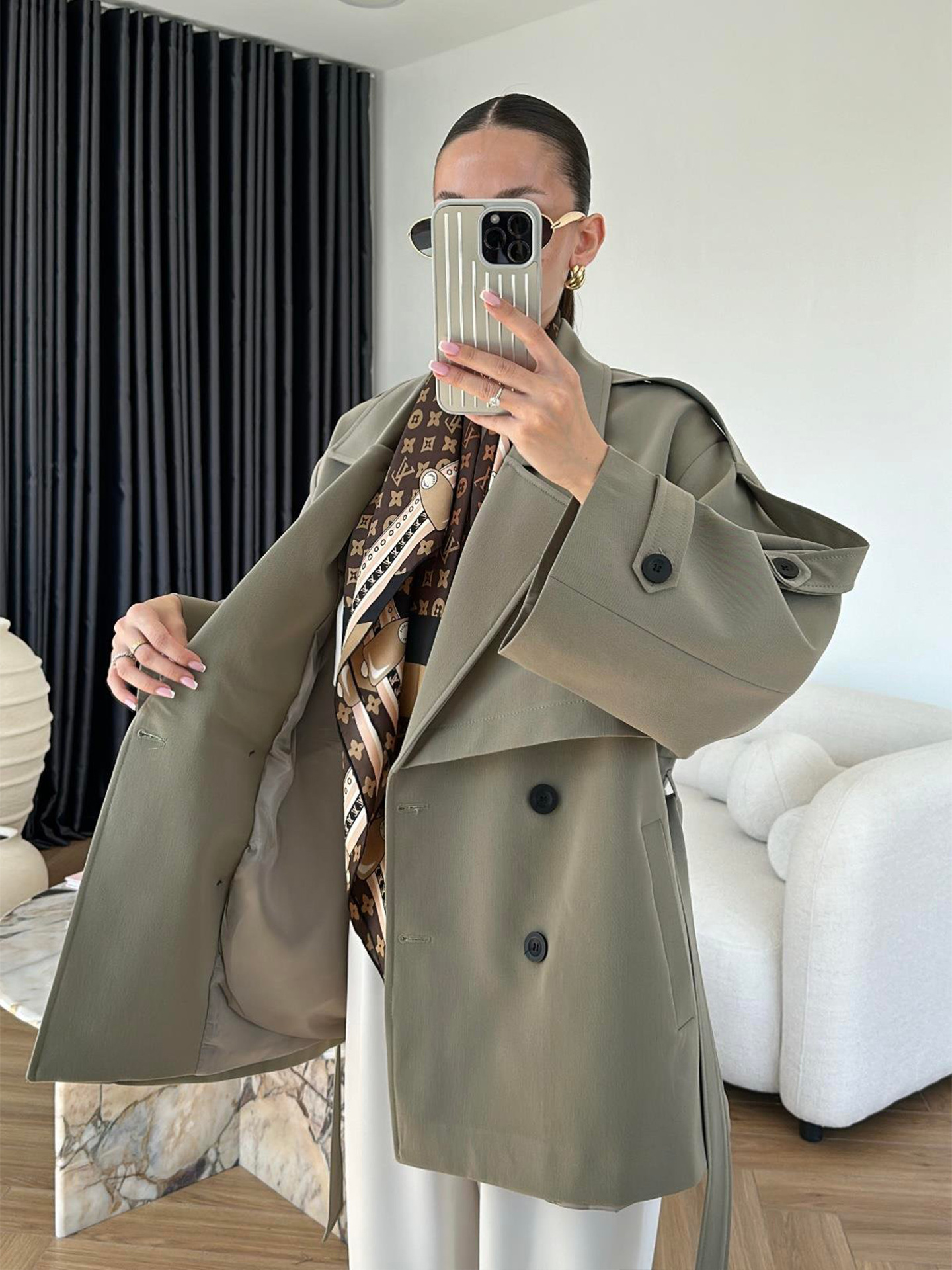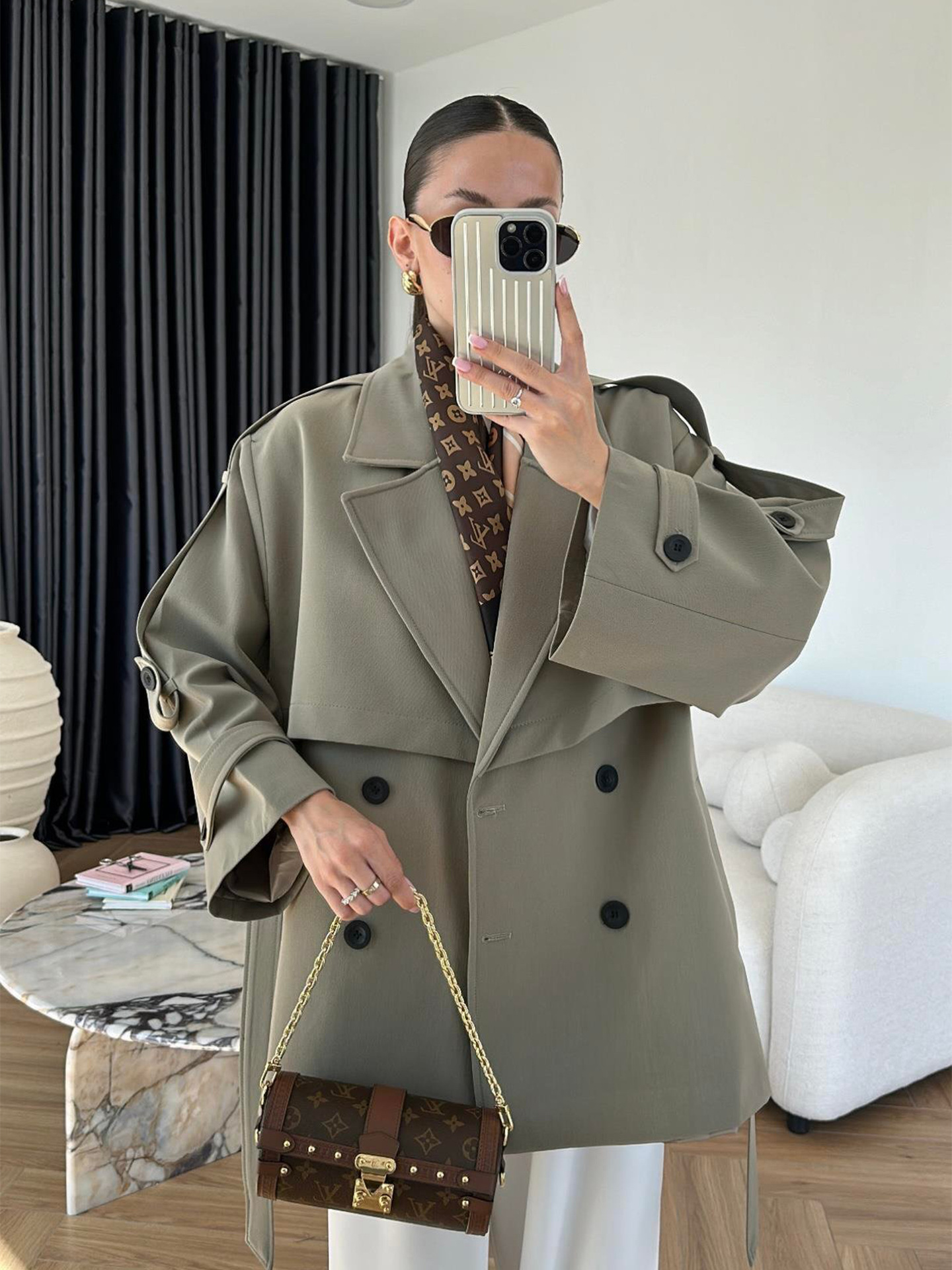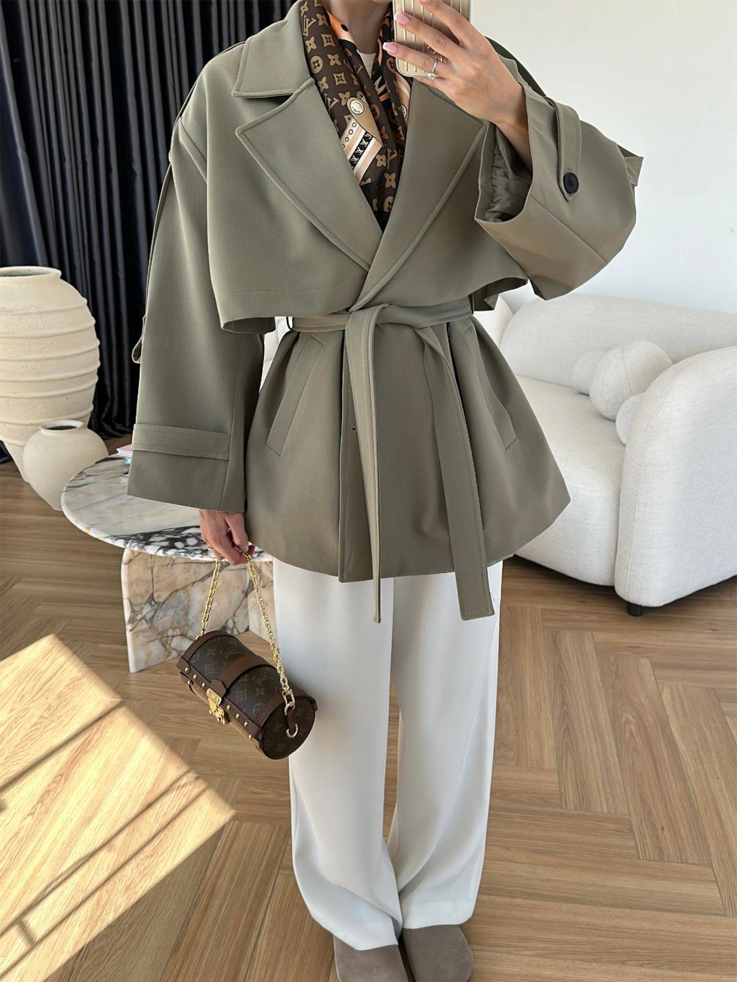 Turn-down Collar Fitted Waist Figure-flattering Elegant Single-breasted Trench Coat